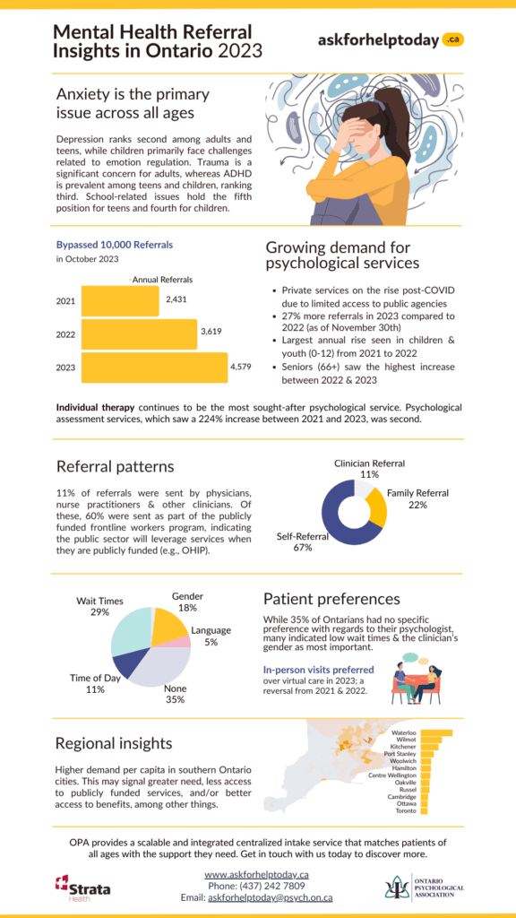 - The continued rise in children youth referrals emphasizes the need for more psychologists and signifies the importance of youth mental health awareness for the Ontario government.