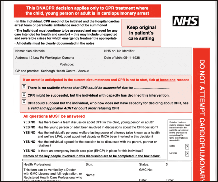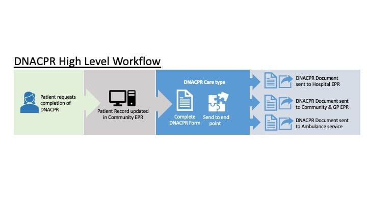 On completion, the DNACPR is saved to the patient’s local record as the latest version and available to the patients GP, community health and ambulance service (NWAS).