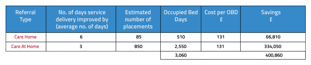 Figure 2Figure 2 demonstrates an estimate of the number of occupied bed days (OBD) saved each year and the corresponding attributable savings. Again, calculating exact actual cost-savings in complex, with estimates ranging between £131-£500 per occupied bed; however, there is no question that introducing Strata Health software has had and will continue to have a significant positive impact on OBD’s with projected recurring annual savings in excess of £400,860.
