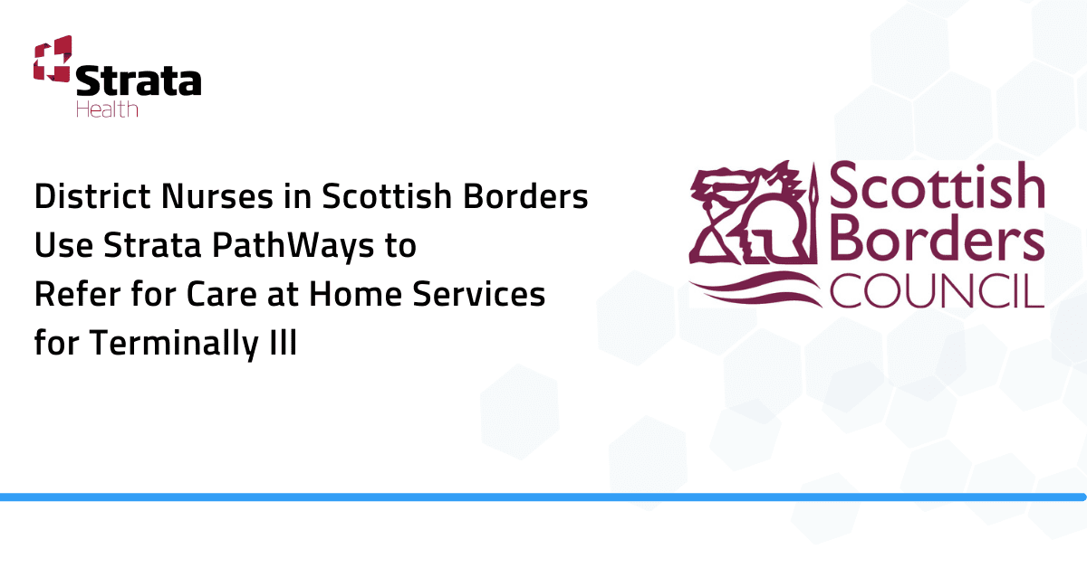 (February 2022) Strata Health is pleased to announce the integration of Strata Pathways with district nursing in the Scottish Borders for services to support palliative care. End of life care for terminally ill patients and their families is further enhanced through the use of Strata PathWays which enables district nurses to make referrals and access and secure packages from their local Care at Home services.